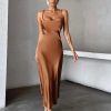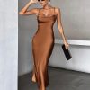 Vestido de Satén Café Integral